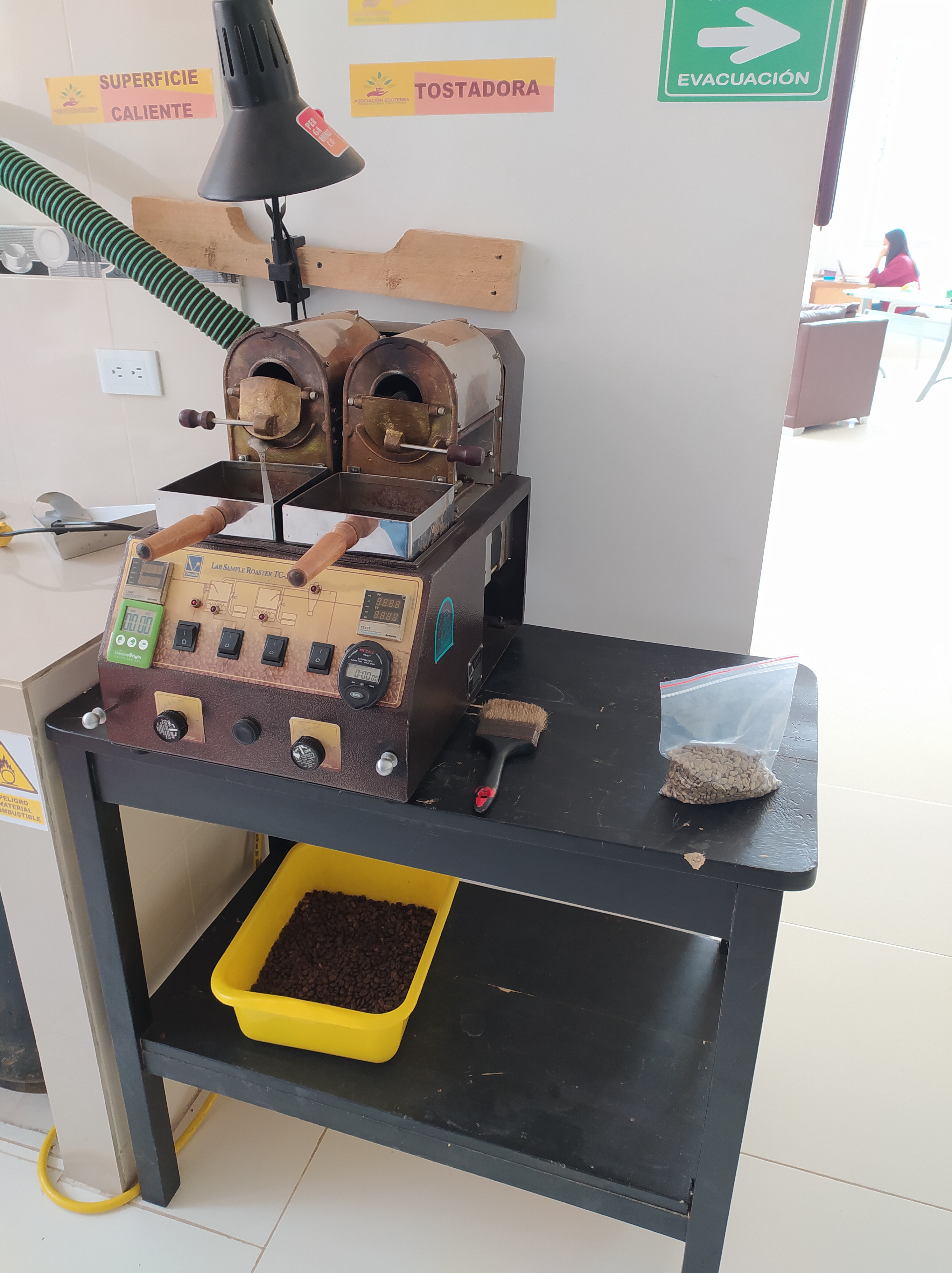 2. Roasting of the coffee: For sampling, Q-graders, who are the quality testers in the world of specialty coffee, usually have a small roasting machine that takes about 15 minutes to transform green into roasted coffee. However, the Q-grader must know his trade very well, for the roasting has to be carefully timed while the coffee must be constantly reviewed, so the optimal point for its tasting is reached.